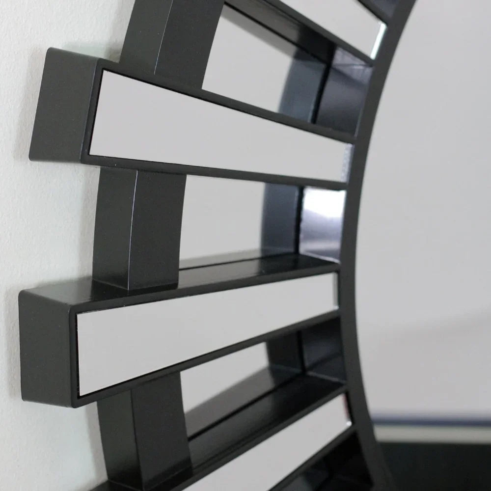 Black Sunburst Round Wall Mirror Wall Mounted Decorative Mirror Includes Hanging Hardware Stylish Home Decor Mirrors Living Room